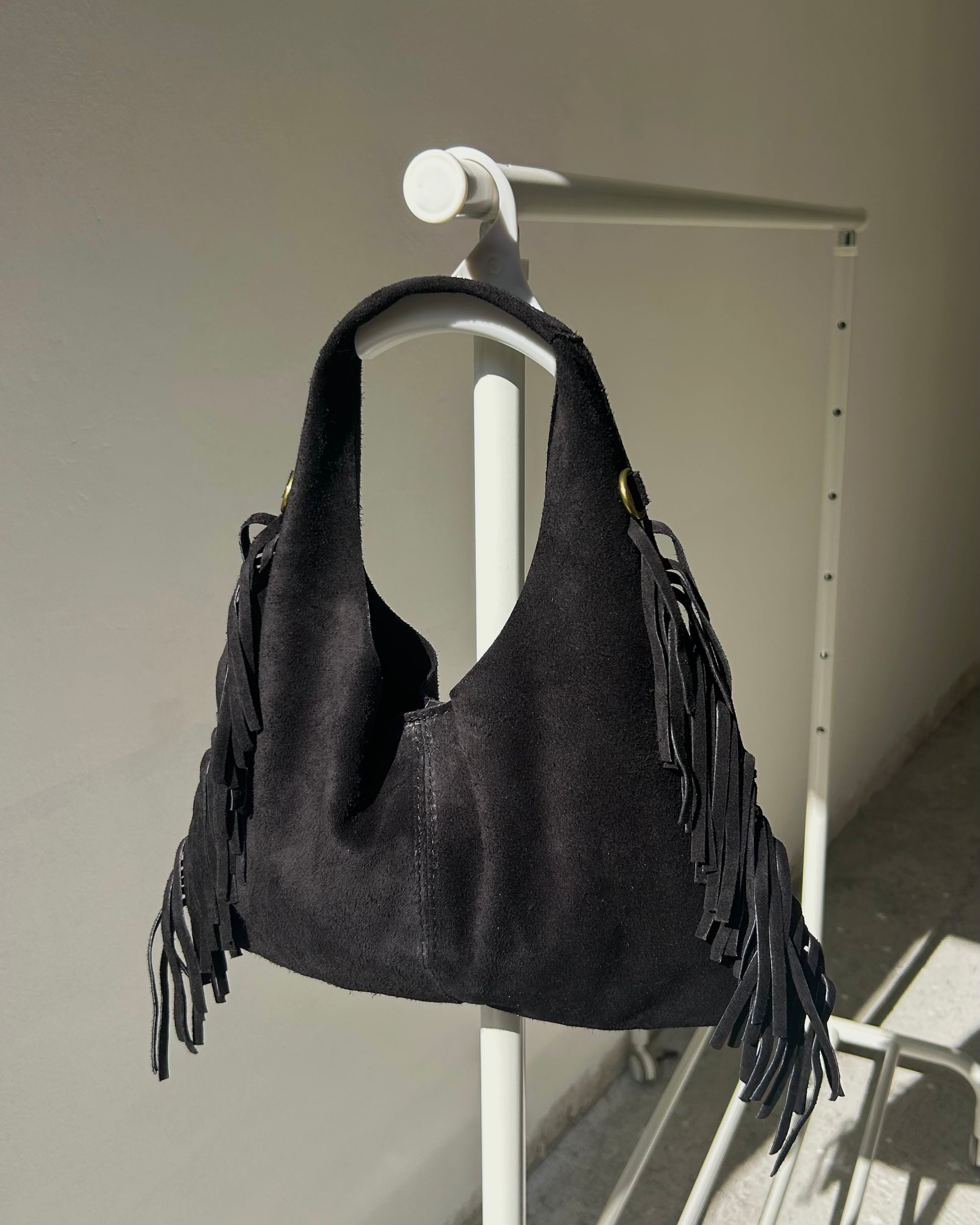 Con le sue frange dallo stile country-chic e il carattere boho, dona movimento e personalità ad ogni look. Capiente, leggera e versatile: la borsa perfetta per accompagnarti in ogni occasione.