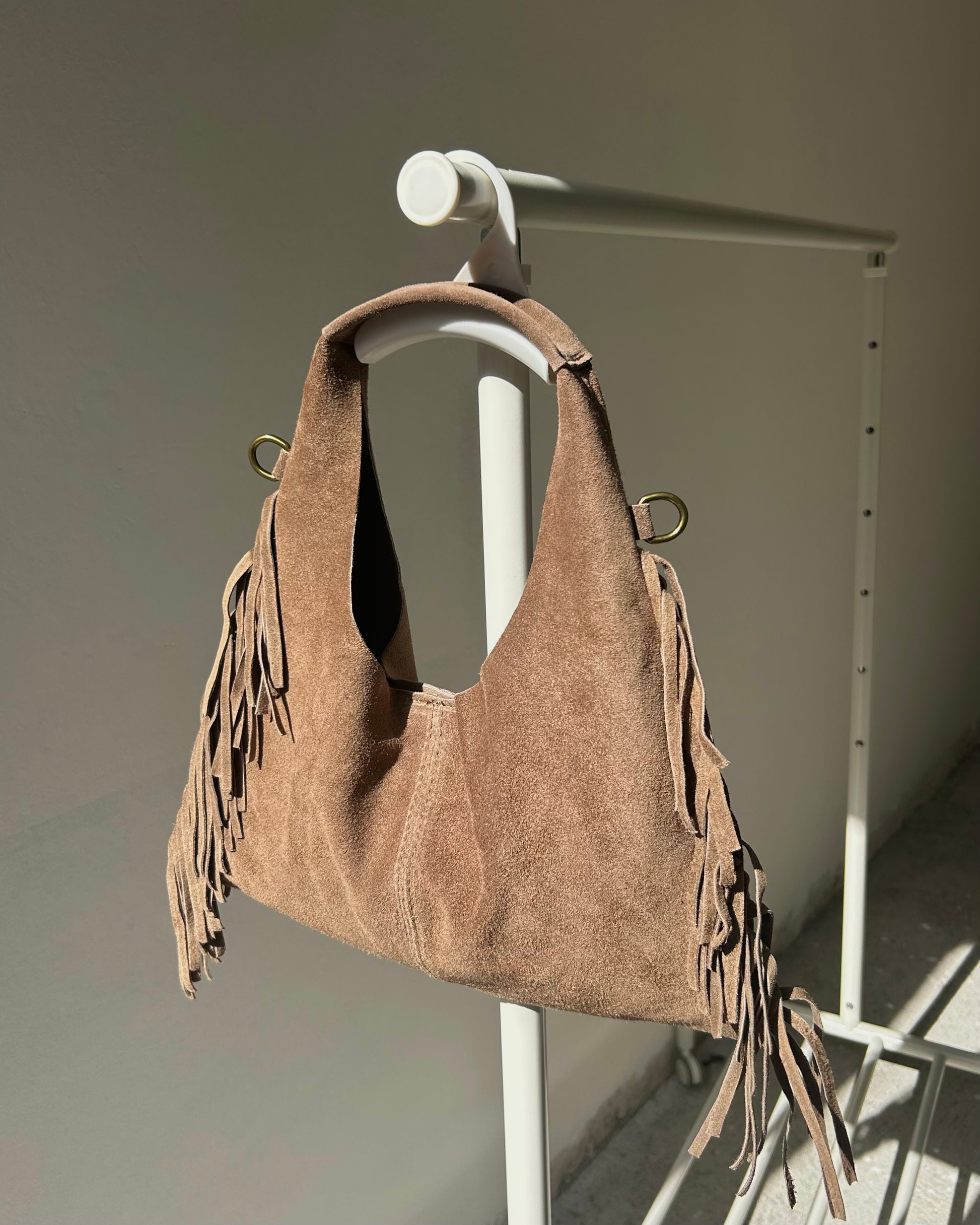 Con le sue frange dallo stile country-chic e il carattere boho, dona movimento e personalità ad ogni look. Capiente, leggera e versatile: la borsa perfetta per accompagnarti in ogni occasione.
