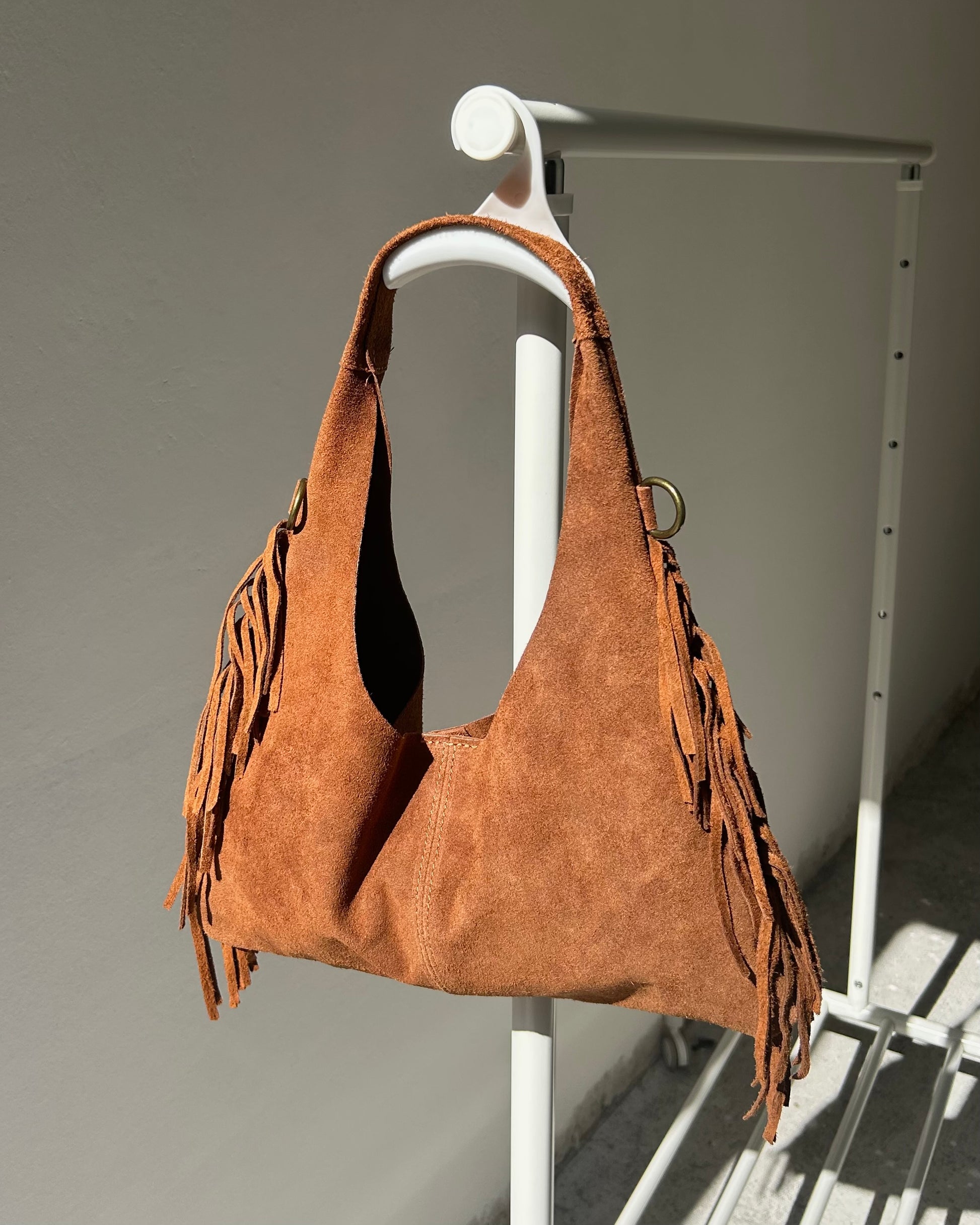 Con le sue frange dallo stile country-chic e il carattere boho, dona movimento e personalità ad ogni look. Capiente, leggera e versatile: la borsa perfetta per accompagnarti in ogni occasione.
