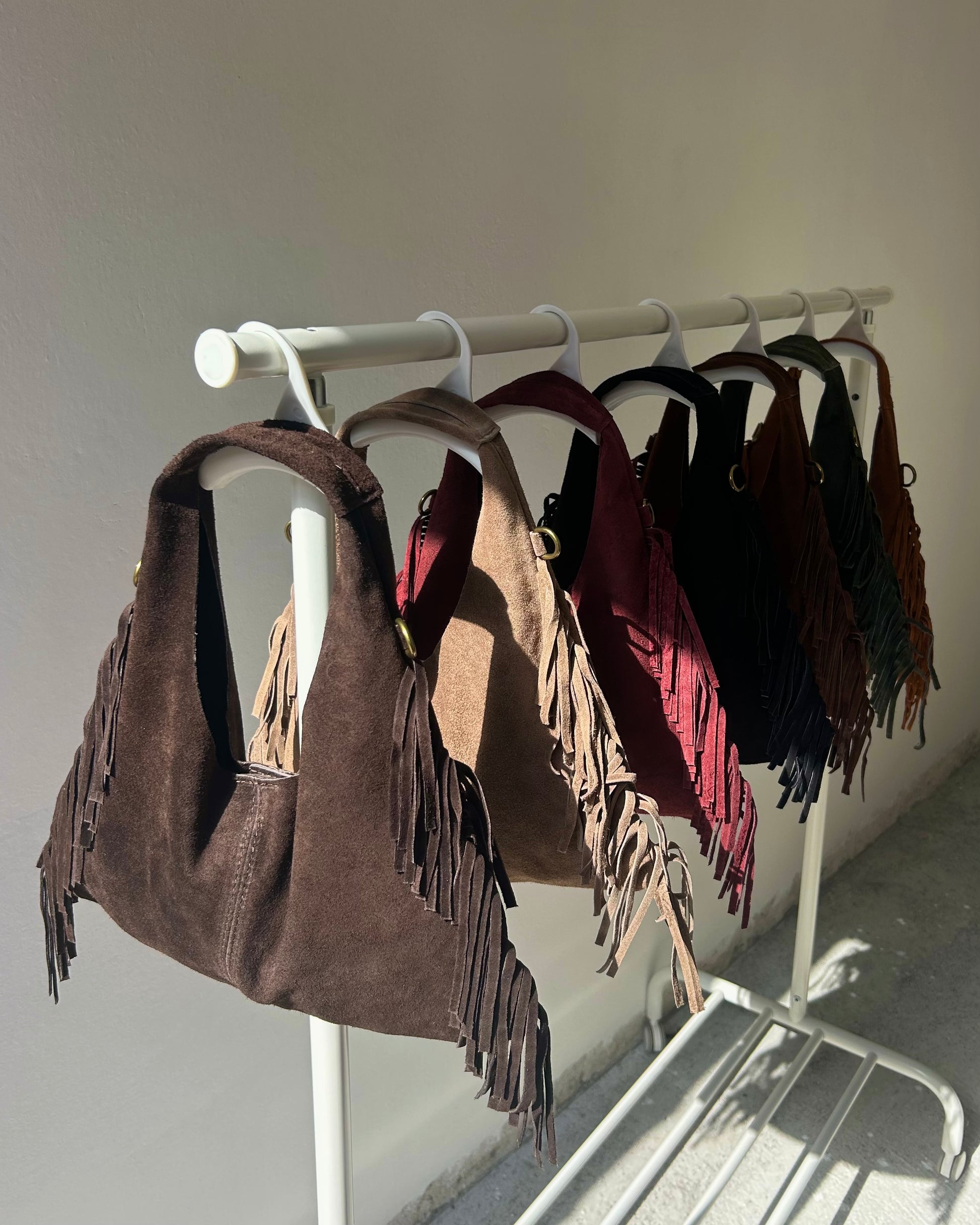 Con le sue frange dallo stile country-chic e il carattere boho, dona movimento e personalità ad ogni look. Capiente, leggera e versatile: la borsa perfetta per accompagnarti in ogni occasione.